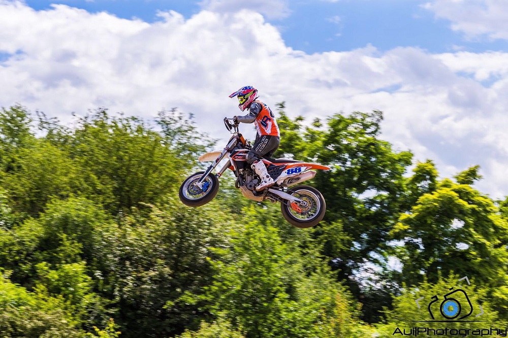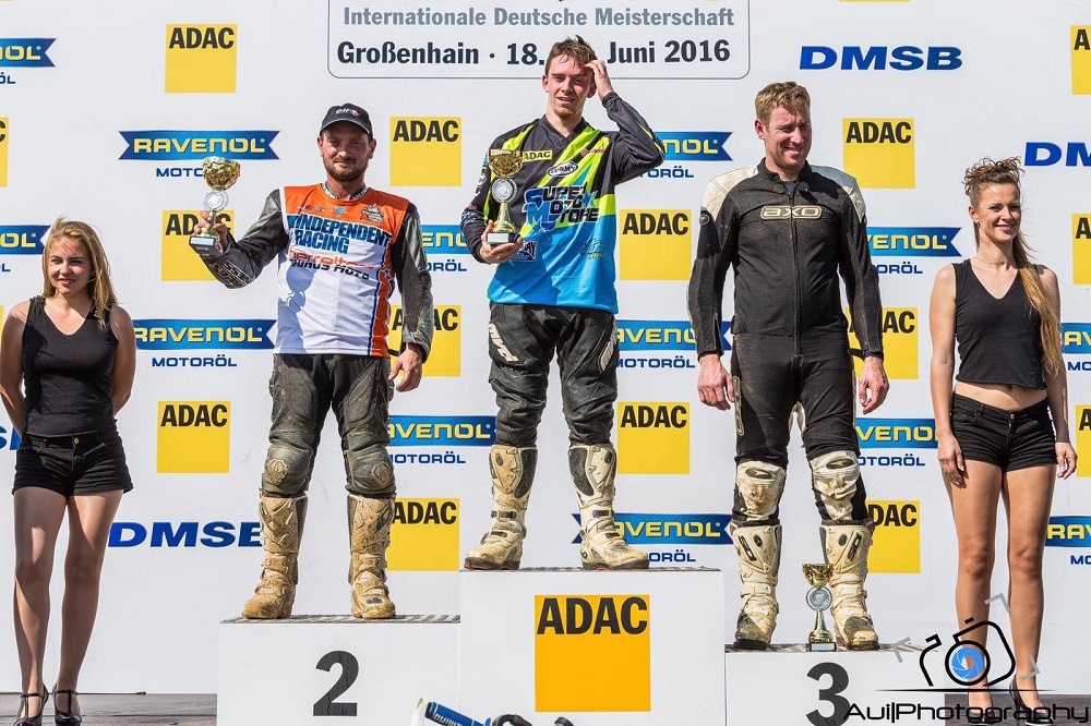 AM WOCHENENDE GINGS WEITER IN GROßENHAIN IM KAMPF UM DIE SUPERMOTOKRONE IN DER KLASSE P 3. IM ZEITTRAINING HOLT SICH CHRISTIAN AUF DER # 88 DEN 6. STARTPLATZ FÜR DIE BEIDEN MEISTERSCHAFTSLÄUFE. DIE WETTERKAPRIOLEN SPIELEN UNSEREM NACHWUCHSTALENT ÜBEL IN DIE KARTEN. RENNEN 1 AM SAMSTAG WIRD IM NASSEN GESTARTET ZUM LEID VON CHRISTIAN, DER MIT FEUCHTEN STRECKENBEDINGNUNGEN NOCH MÄCHTIG HARDERT. ER FINDET BEI REGEN NOCH NICHT DAS RICHTIGE VERTRAUEN IN SEIN BIKE UND MUß NOCH EINIGES AUSSORTIEREN. ES FEHLEN NATÜRLICH NOCH DIE ERFAHRUNGEN DES NEWCOMERS, DER SEINE ERSTE SAISON AUF ASPHALT BESTREITET. DA CHRISTIAN IN DER TABELLE GANZ VORNE DABEI IST GILT ES NUN SCHADENSBEGRENZUNG ZU BETREIBEN UND AUF DER 350er KTM SITZEN ZU BLEIBEN. ER RETTET DEN 8. PLATZ UND SOMIT 13 WEITERE MEISTERSCHAFTSPUNKTE INS ZIEL. AM SONNTAG IN RENNEN 2 IST ES NUN ENDLICH TROCKEN UND DIE # 88 KANN DIE DAS WAHRE POTENZIAL AUFBLITZEN LASSEN. NACH EINEM MÄSIGEN START KANN ER SICH VOM NEUNTEN AUF PLATZ 2 VORKÄMPFEN UND GEHT NUR 2 SEKUNDEN RÜCKSTAND AUF DEN SIEGER DURCHS ZIEL. WIEDER 22 MEISTERSCHAFTSPUNKTE GESAMMELT UND ENDGÜLTIG IM ABSOLUT ENGSTEN MEISTERSCHAFTSFIGHT IN DER KLASSE P 3 ANGEKOMMEN.