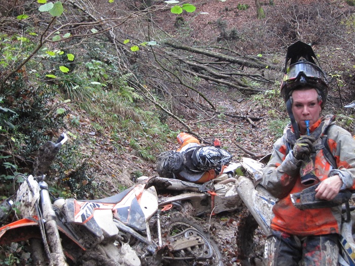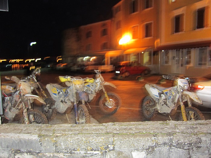 NACH DEM CHEK IN, TREFFEN WIR UNS MIT DEN ANDEREN TEILNEHMERN UND DEN TOURQUIDES ZUM ABENDESSEN. DORT WURDE GLEICH MAL TREFFPUNKT, GRUPPENZUORDNUNG VORAB VEREINBART. AM NÄCHSTEN MORGEN WAR ES DANN SOWEIT WIR STARTEN MIT ROBERT, UNSEREM TOURGUIDE EINER RECHT BUNTEN TRUPPE. EIN UKRAIENER, EIN SCHWEIZER, ZWEI ÖSTERREICHER INKL. TOURGUIDE, ZWEI ENGLÄNDER DARUNTER EMYLI EIN MÄDEL, HANSMANN UND ICH AUS BAYERN. NACH RELATIV KURZER FAHRT KOMMTS ZUM ERSTEN SHOWDOWN. EINE ZIEMLICH STEILE, FELSIGE AUFFAHRT DIE DURCH DIE NÄSSE SPIEGELGLATT IST. ICH FAHRE DIREKT HINTER DEM GUIDE ROLAND UND DENKE JETZT WIRDS DAUERN BIS DIE GANZE TRUPPE EINTRIFFT. KURZ NACH UNS KOMMT AUCH SCHON HANSMANN, UND WENIG SPÄTER ZU MEINER GRÖßTEN VERWUNDERUNG EMILY, DAS ENGLISCHE MÄDL AUF DER 350er HUSQVARNA. UNGLAUBLICH, ABER WAHR. VOM SCHWEIZER MARCEL, DER AUCH FÜR DIE RED BULL ROMANIACS TRAINIERT, DAß EMILY BEI DER ROMANIACS IN DER KLASSE BRONZE UND BEI SEA TO SKY IN SILBER GEFINISHT HAT. ALLERDINGS MIT IHERER KTM FREERIDE, SIE IST JA NUR CA. 1,60 GROß. ALSO KANNS WEITERGEHEN, MÄCHTIG STARKE TRUPPE TROTZ DES FRAUENANTEILS. ES BESTEHT WIRKLICH ALARM VON EINER FRAU GEBOGEN ZU WERDEN. DURCH DEN VORAUSGEGANGEN REGEN SIND DIE FELSEN UND DAS LAUB IN DEN WÄLDERN EXTREM RUTSCHIG UND DIE SACHE WIRD RECHT ANSPRUCHSVOLL. DER GUIDE NAVIGIERT MIT GPS UND WIR MÜSSEN UNS AUFGRUND DER BEDINUNGEN DEN WEG DURCH DAS GELÄNDE FREIFAHREN UND UNS DES ÖFTEREN DURCH ZUGEWACHSENES UNTERHOLZ ÜBER QUERLIEGENDE BÄUME KÄMPFEN. JEDER VON UNS KOMMT PHASENWEISE ANS LIMIT. ABENDS GEHTS DIREKT MIT DER ENDURO AN DEN HAFEN, WO WIR AN EINER BAR DIE NOCH SEHR ANGENEHMEN TEMPERATUREN GENIEßEN. AM NÄCHSTEN TAG SIEHT DAS WETTER AM MORGEN ETWAS FREUNDLICHER AUS UND WIR STARTEN DIREKT AM MEER ENTLANG MIT EINER KLEINEN STRANDETAPPE. KEINER AHNT ZU DIESEM ZEITPUNKT WAS NOCH ALLES VOR UNS LIEGT. NACH KURZER FAHRT STELLT MEIN HAUPTBREMSZYLINDER DEN DIENST EIN UND WIR FAHREN NOCHMALS ZURÜCK UM ZU REPARIEREN. GUT, DAß ICH ERSATZ DABEI HABE SONST WÄRS JETZT SCHON VORBEI UND ICH HÄTTE MIR DIE GEILE SCHINDEREI GESPART. ES GEHT WEITER ÜBER STEINIGE PFADE, AUFFAHRTEN DURCH BÄCHE ES WIRD ALLES GEBOTEN. NACH MITTAG SUCHEN WIR DEN SOGENANNTEN ZIEGENPFAD, EINE EXTREM STEILE ARSCHGLATTE ABFAHRT ÜBER FELSEN. SCHON BIS WIR DEN EINSTIEG FANDEN WURDE UNS EINIGES GEBOTEN. DANN AM SPÄTNACHMITTAG FOLGTE EIN INTERMEZZO. DIE SCHLÜßELSTELLE EINE SEHR ANSPRUCHSVOLLE, MIT GROßEN STEINEN UND FELSEN GANIERTE AUFFAHRT, DIE DANK DER QUER LIEGENDEN BÄUMEN EIGENTLICH UNFAHRBAR WAR. ROLAND UNSER GUIDE WUßTE NATÜRLICH WAS SICH  NUN ABSPIELEN WÜRDE UND BOG LINKS IN EINE SPIEGELGLATTE, MIT NAßEN BLÄTTERN UND ÄSTEN GEPFLASTERTEN SEILAUFFAHRT IN DEN WALD AB, UM DAS GANZE ZU UMFAHREN. WIR FOLGTEN SEINEM VORHABEN UND FRÄSTEN UNS FÖRMLICH DIE LETZTEN METER SCHIEBEND DIE ANHÖHE HOCH. OBEN ANGEKOMMEN SAHEN WIR, DAß  DER REST DER GRUPPE SCHEITERTE UND VERSUCHTE DIE SCHLÜßELSTELLE ZU ÜBERWINDEN. NACH EINER KURZEN PAUSE STEIGEN WIR HINUNTER UND HELFEN DEN ANDEREN MOTORRAD  FÜR MOTORRAD ÜBER DIE BÄUME UND FELSEN ZU WUCHTEN. ALS HANSMANNS HUSA GRIP KRIEGT WERD ICH FAST VON IHR GETROFFEN. BALD GEHTS WEITER, DENN ES BEGINNT BEREITS ZU DÄMMERN UND DANN KOMMTS NOCH HEFTIGER. ES GEHT EWIG LANG BERGAUF ÜBER FELSEN UND STEINE, EIN SEHR SCHMALER PFAD MIT ENGEN STEILEN KEHREN. DIE KRAFT LäßT NACH UND ICH KÄMPFE MICH METER FÜR METER WEITER. GEFÜHLSMÄSIG DÜRFTE KEIN STOLLEN MEHR AUF DEM HINTERREIFEN SEIN. OBEN ANGEKOMMEN KOCHT DIE 350er TROTZ DES LÜFTERS AB UND ICH BIN KOMPLETT PLATT. UNTEN HÖRT MAN DEN REST DER TRUPPE INTENSIV FRÄSEN. ES DAUERT BIS ALLE OBEN SIND UND INZWISCHEN IST ES STOCKDUNKEL. NUN KÄMPFEN WIR NICHT NUR MIT DEM GELÄNDE SONDERN AUCH MIT DER DUNKELHEIT. IMMER WIEDER STÜRTZT EINER VON DER TRUPPE, DENN ES IST SPIEGELGLATT. IN NOVIGRAD ANKOMMEN SIND WIR GANZ FROH, DAS WIR ES UNBESCHADET ÜBERSTANDEN HABEN. NUN KANN DER WINTER KOMMEN UND WIR PLANEN DIE NÄCHSTE SAISON.