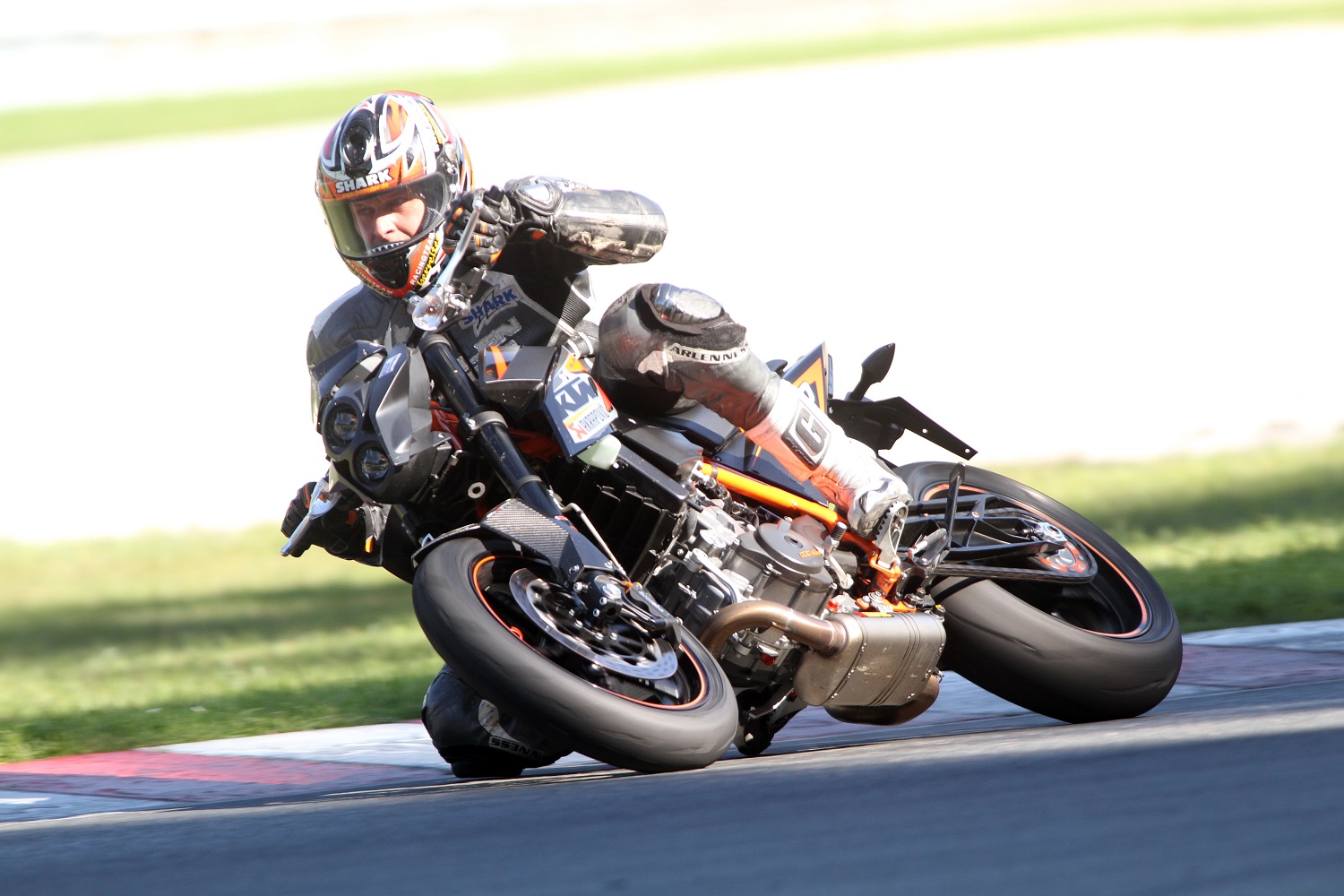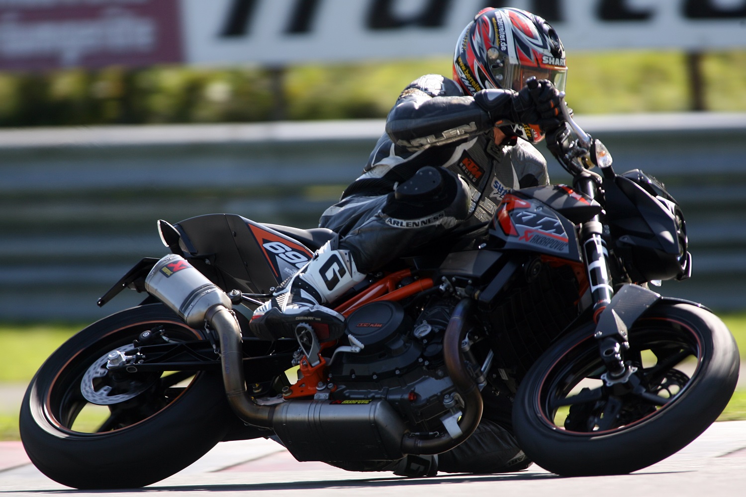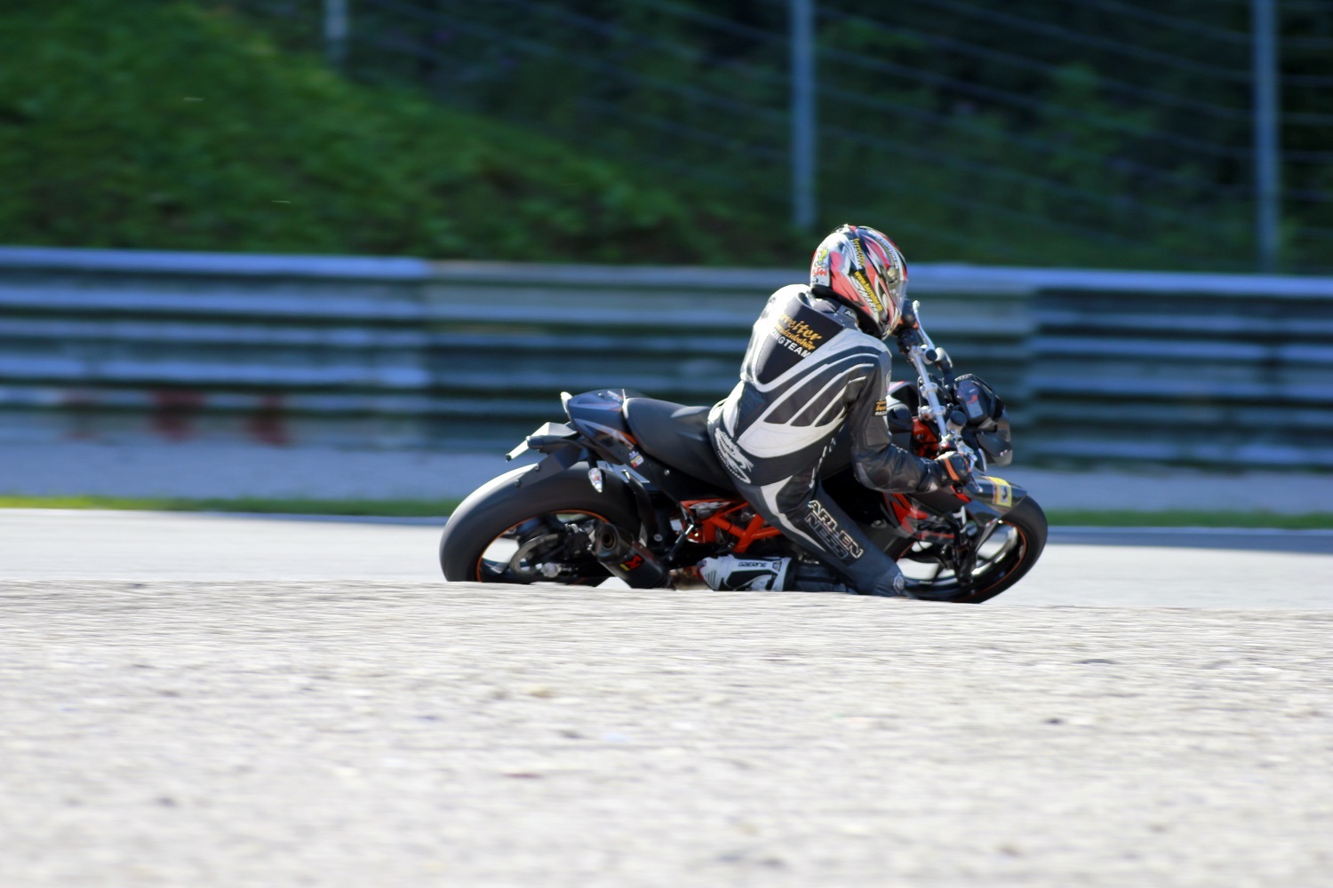 GEFAHRENEN SCHRÄGLAGEN ZAUBERN EIN DAUERGRINSEN UNTER DEN HELM. BREMSPUNKTE UND KURVENGESCHWINDIGKEITEN LIEGEN AUF EINEM KOMPLETT ANDEREN LEVEL. MEHR SPAß AUF ZWEI RÄDERN KANN MAN NICHT ERLEBEN. SOGAR AUF DEM SALZBURGRING, DEN MANCHE 1000er FAHRER ALS LANGWEILIG BEZEICHNEN MÖCHTE ICH MIT KEINEM BIKE DER WELT TAUSCHEN. DIE KLEINE IM DETAIL VERFEINERTE 690er DUKE 3 IST DAS GEILSTE WAS ICH JE UNTER MEINEM HINTERN HATTE. ICH FREUE MICH SCHON HEUTE AUF 2016, DEN ASPHALT, DIE SCHRÄGLAGEN UND DIE GEBÜCKTEN AUF IHREN SUPERSPORTLERN.